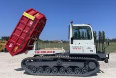 Le Takeuchi TCR 50 est un mini-dumper sur chenilles conçu pour un transport rapide et efficace dans des environnements complexes. Son système de basculement tridirectionnel et sa cabine ergonomique en font un outil idéal pour les travaux en zone urbaine, sur les chantiers routiers et dans les projets d'infrastructure.