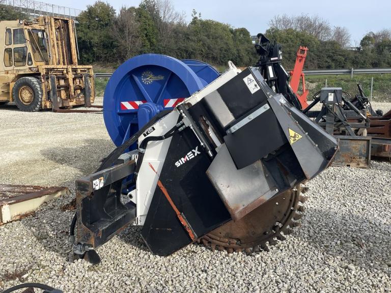 Scavacanali Simex T 450 S, anno 2017, peso 1185 kg, profondità max di scavo 150-450 mm, larghezza scavo 50 mm, portata impianto idraulico 100-160 l/min, pressione impianto idraulico 250 bar, traslazione laterale idraulica, regolazione profondità idraulica, la presa elettrica è da 14 pin, 3 tubi i [...]