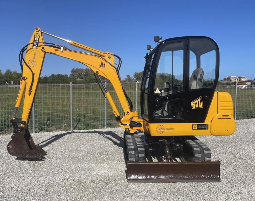 Il miniescavatore JCB 803 Plus è una macchina da cantiere compatta, robusta e versatile, progettata per lavori in spazi ristretti, con un peso operativo di circa 3 tonnellate e dimensioni che lo rendono maneggevole.