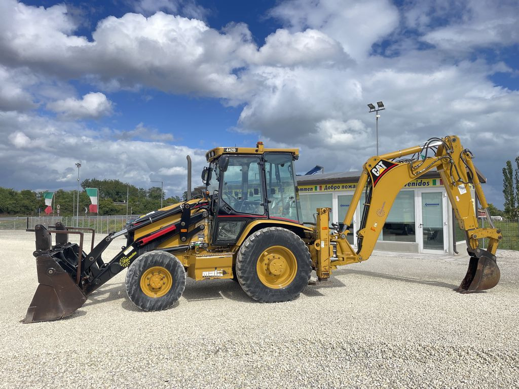La Caterpillar 442D è una terna, ovvero una macchina da cantiere con benna anteriore e retroescavatore posteriore, dotata di trazione integrale 4x4. Questo modello offre prestazioni per lo scavo e il movimento terra ,